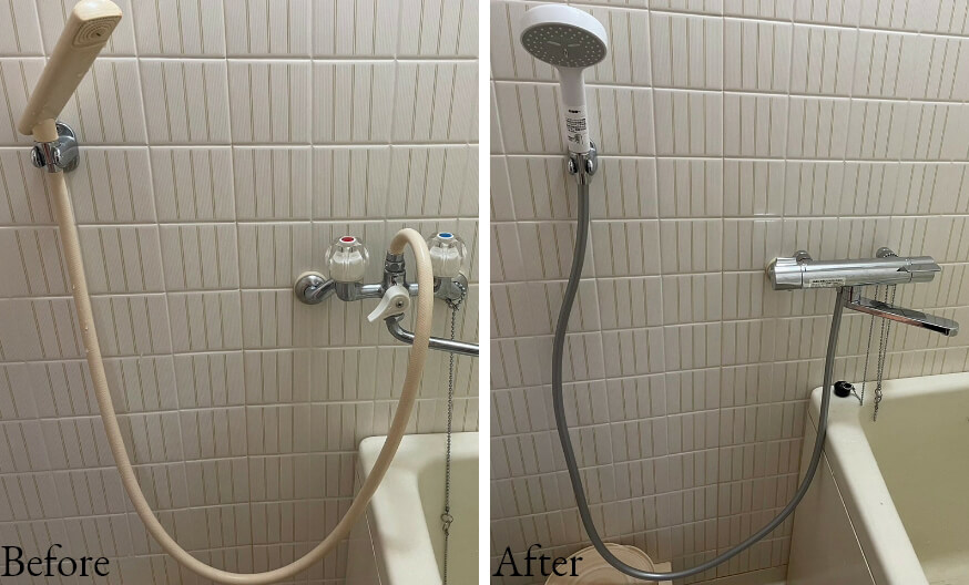 B様邸 シャワーカラン取替え工事最短当日対応可能です。浴室・台所・トイレ・台所・外流しなど蛇口一つでも承ります。 -