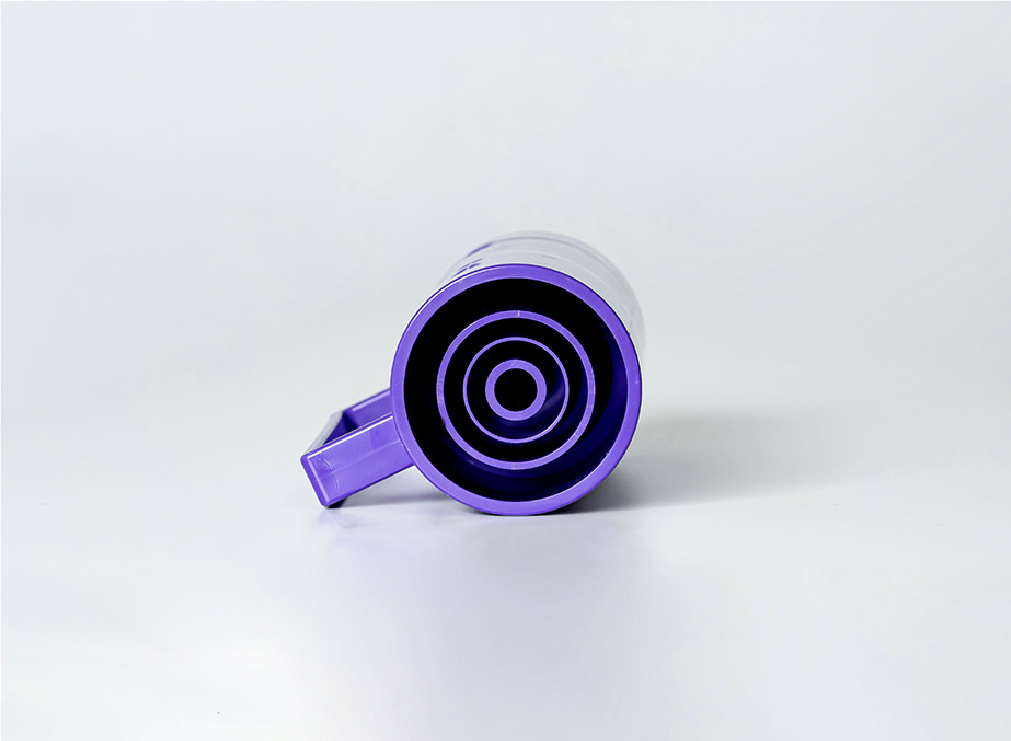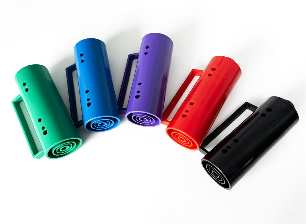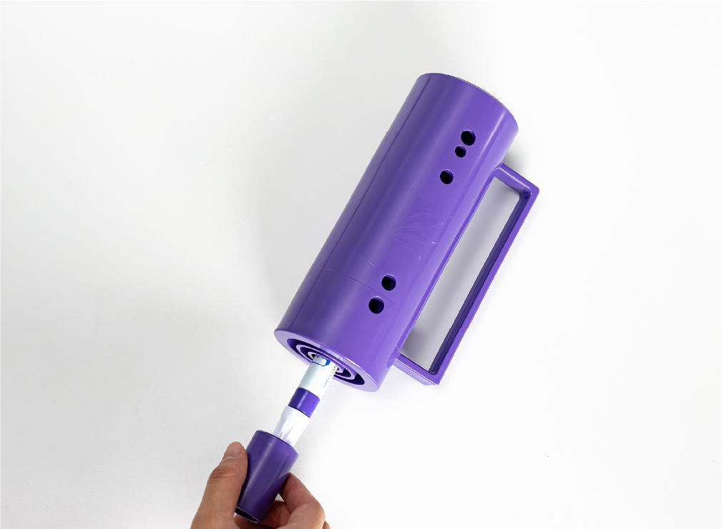 適合する溝にパイプを差し込んでマーキングするだけの簡単構造です。 1カ所7秒の早業で正確に作業できます。 さらに、1周(全周)マーキングを可能にしたため視認性が高いのが特徴です。 頑丈設計で少しの衝撃では破損せず高所での作業にも活躍します(※6.5m垂直落下自社実験済)。